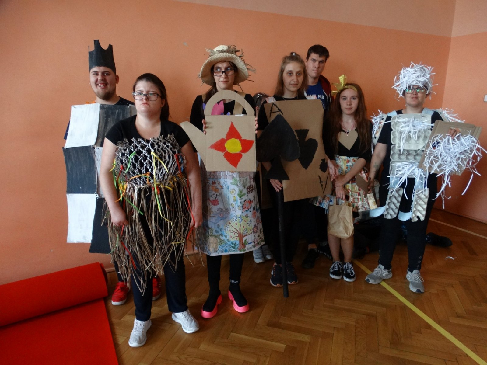 W Naszej szkole naprawdę dzieje się wiele wspaniałych rzeczy. Jedną z nich były obchody Dnia Dziecka, podczas których odbył się ekologiczny pokaz mody pod hasłem: „Papierowy zawrót głowy”. Całą społecznością szkolną spotkaliśmy się wczoraj w sali gimnastycznej, aby wspólnie spędzić czas. Jak na prawdziwy pokaz mody przystało były specjalnie i misternie przygotowane stroje z papieru i jego pochodnych oraz czerwony dywan. Nie zabrakło też gości honorowych – Pani starosty Beaty Hanyżak oraz Pana wicestarosty Rafała Zimnego.