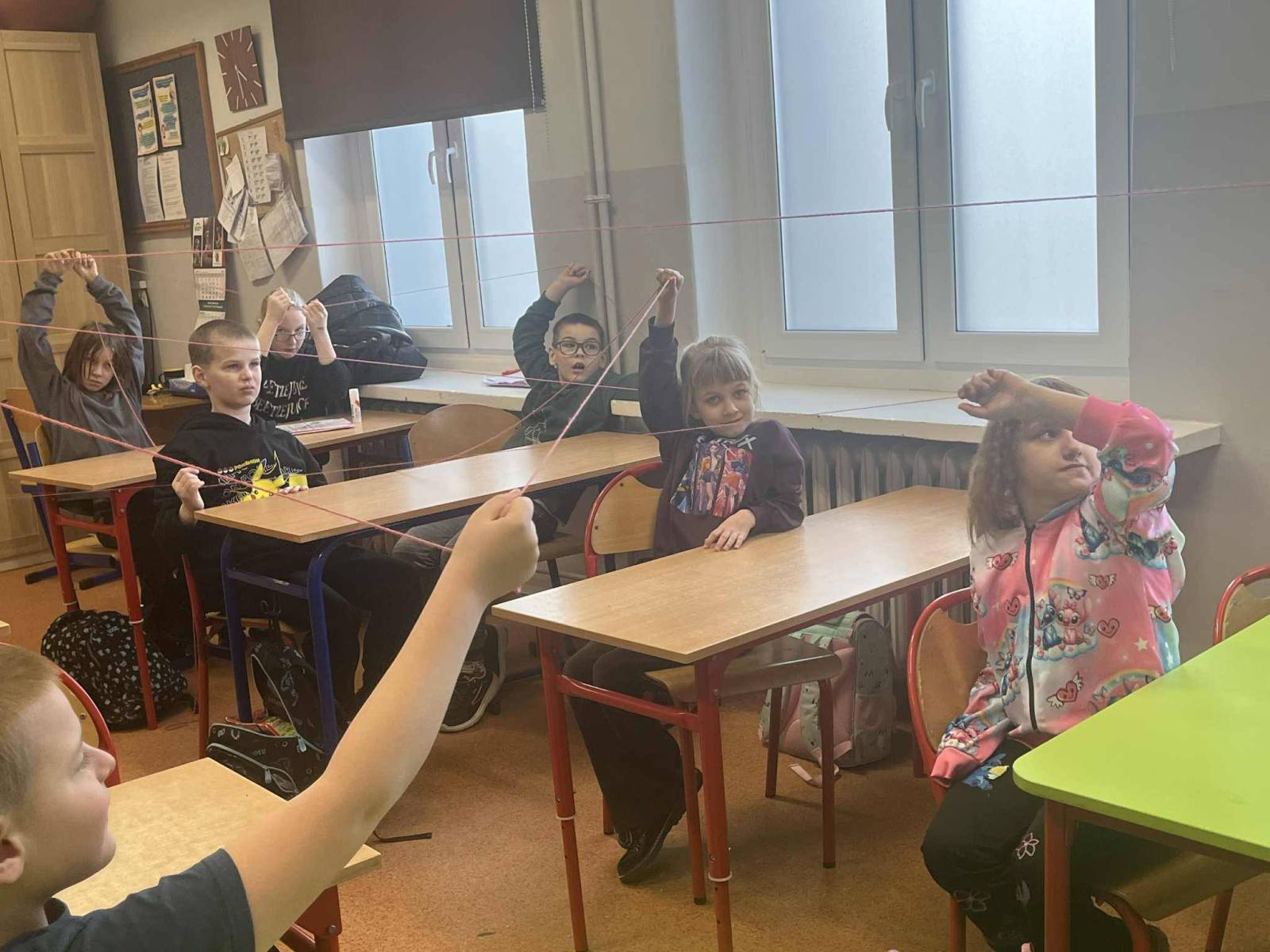 W lekturniku uczniowie uzupełnili strony związane z lekturą. Wykonali kolaż: pałac królowej śniegu oraz lodowe witraże. Witraże zostały zawieszone na gałęziach drzew. Na koniec wszyscy uczestnicy projektu połączyli się nicią przyjaźni.
