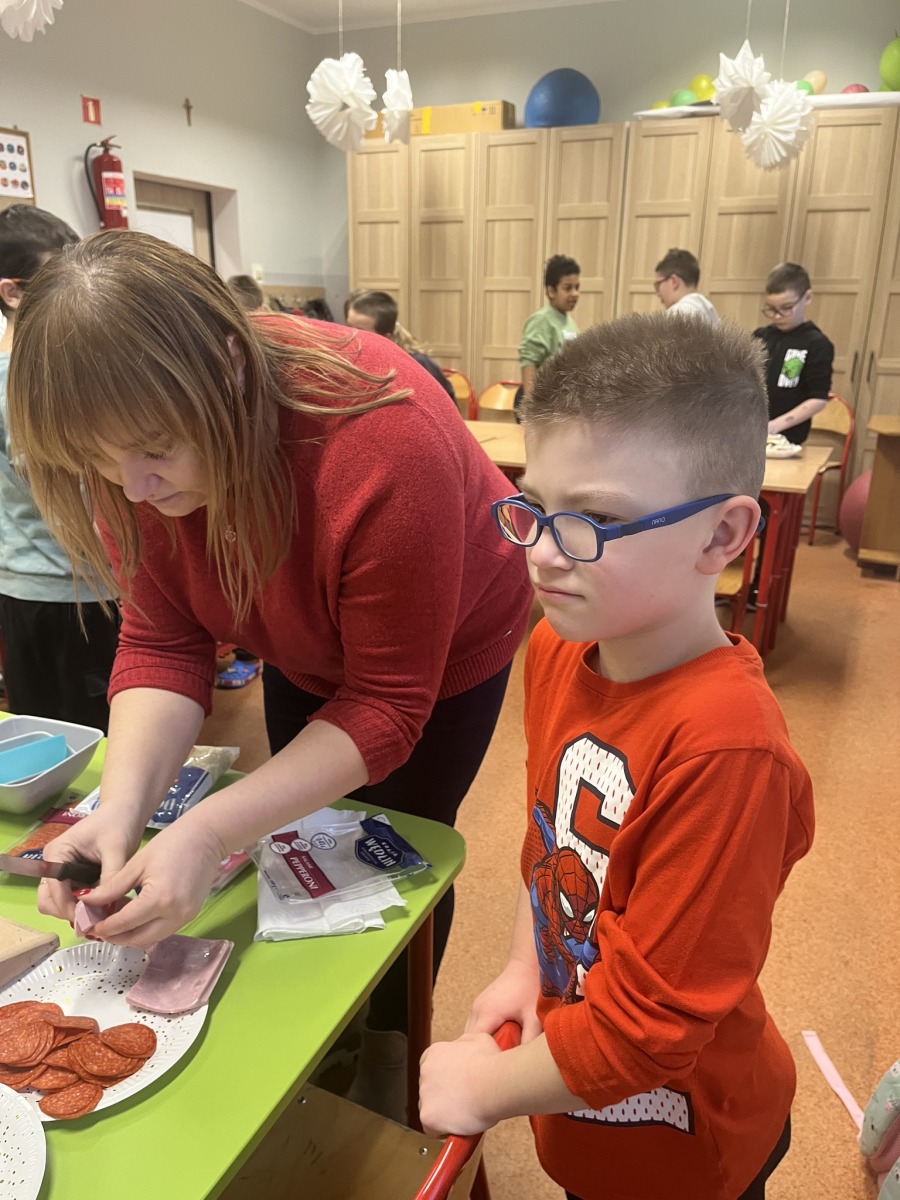 W dniu 09.02.2026 r. z okazji Dnia Pizzy uczniowie klas 1–3 wzięli udział w zajęciach kulinarnych, podczas których poznali zasady higieny oraz samodzielnie przygotowali pizzę z wybranymi składnikami. Zajęcia były okazją do wspólnej zabawy, nauki i integracji.