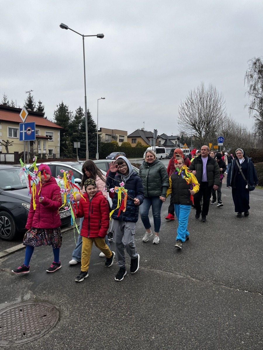 Uczniowie ubrali się kolorowo, a wcześniej przygotowane gaiki towarzyszyły nam podczas radosnego pochodu ulicami Szamotuł. Było głośno, wesoło i bardzo wiosennie!