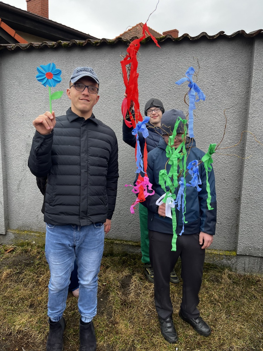 Uczniowie ubrali się kolorowo, a wcześniej przygotowane gaiki towarzyszyły nam podczas radosnego pochodu ulicami Szamotuł. Było głośno, wesoło i bardzo wiosennie!