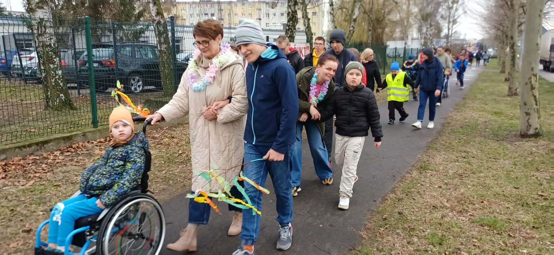 Uczniowie ubrali się kolorowo, a wcześniej przygotowane gaiki towarzyszyły nam podczas radosnego pochodu ulicami Szamotuł. Było głośno, wesoło i bardzo wiosennie!