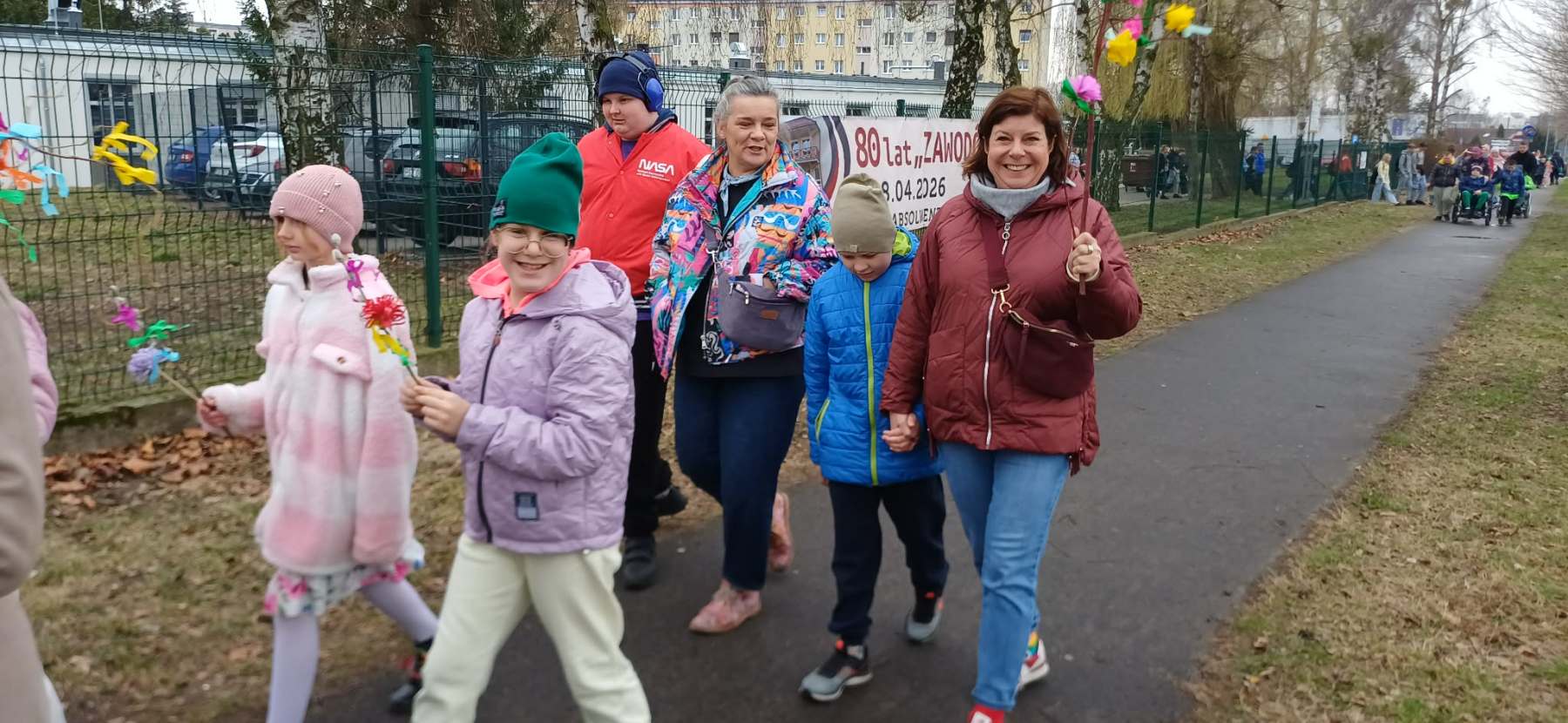 Uczniowie ubrali się kolorowo, a wcześniej przygotowane gaiki towarzyszyły nam podczas radosnego pochodu ulicami Szamotuł. Było głośno, wesoło i bardzo wiosennie!