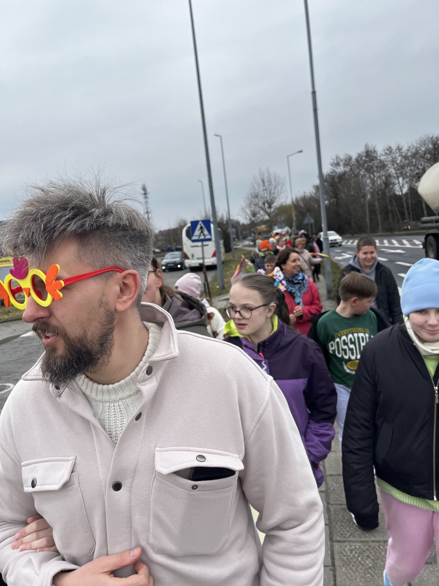 Uczniowie ubrali się kolorowo, a wcześniej przygotowane gaiki towarzyszyły nam podczas radosnego pochodu ulicami Szamotuł. Było głośno, wesoło i bardzo wiosennie!