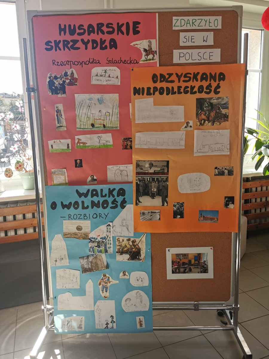 Uczniowie klas 4-6 AP i 7-8 BP zakończyli realizację projektu czytelniczo-historycznego „Zdarzyło się w Polsce”. W trakcie realizacji zapoznali się z wybranymi opowiadaniami i faktami historycznym, wykonali prace plastyczne, zwiedzili Muzeum Zamek Górków, zapalili znicze w miejscu pamięci ofiar II Wojny Światowej oraz ćwiczyli elementy musztry. Projekt zakończył się wystawą, którą można obejrzeć w holu szkoły.