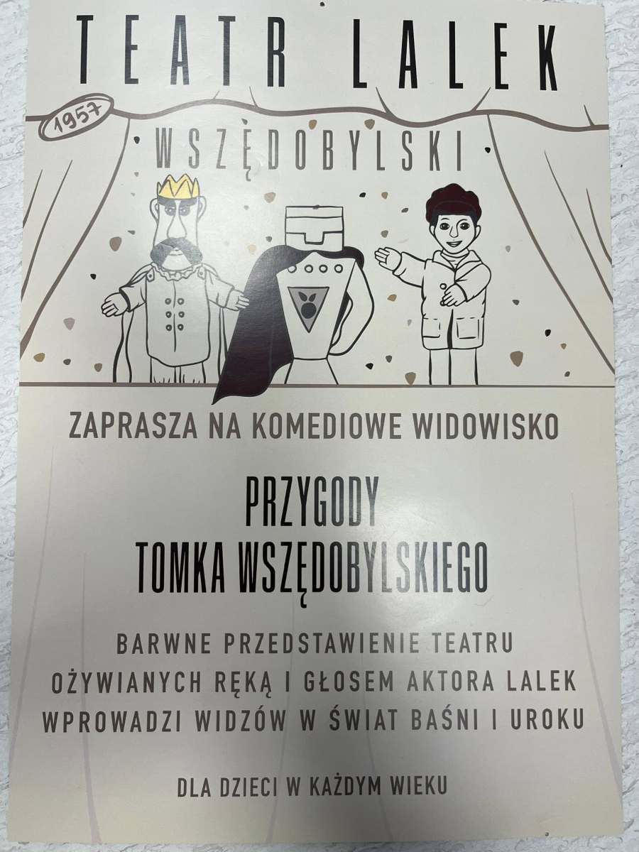 Dziś naszą szkołę odwiedził Teatr Lalek „Wszędobylski” z przedstawieniem „Przygody Tomka Wszędobylskiego”.