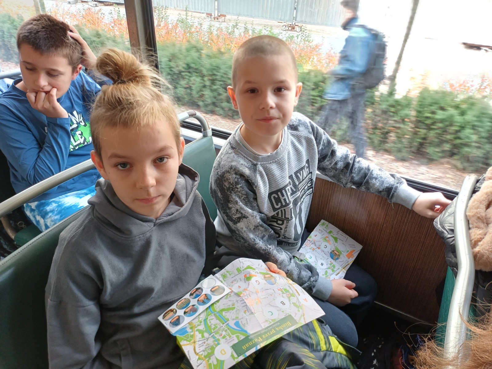 Tak można krótkimi słowami opisać naszą wycieczkę „Bimbą przez Poznań”. Najpierw udaliśmy się pociągiem do stolicy wielkopolski, a potem starym tramwajem – bimbą Helmutem wokół Poznania. Pani Konduktor barwnie opowiadała o mijanych zabytkach, a my dzielnie uzupełnialiśmy mapę. Razem z nami jechał Kacper – święty Marcin, Zuza – król Przemysław oraz dwaj konduktorzy szkolni – Tosia i Franek. Na koniec McDonald i pociągiem do Szamotuł. Ależ to był dzień… pełen wrażeń!